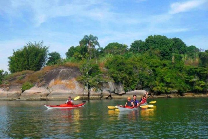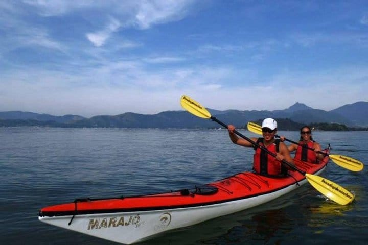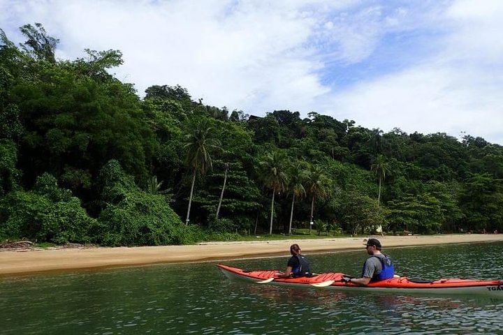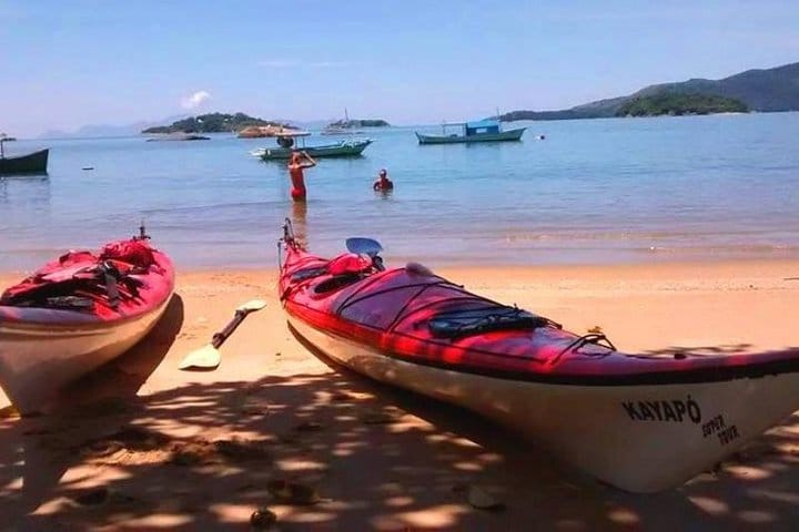 Tour Paraty Bay in ocean kayaks, lasting 4 hours, visiting mangroves, white sand beach and desert island with a stop for rest and snorkeling.